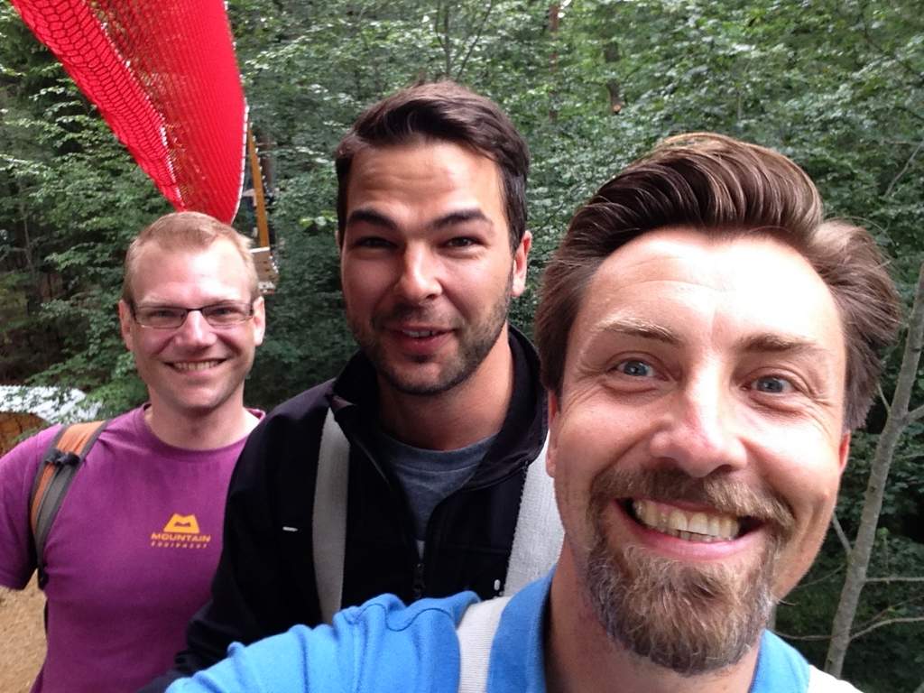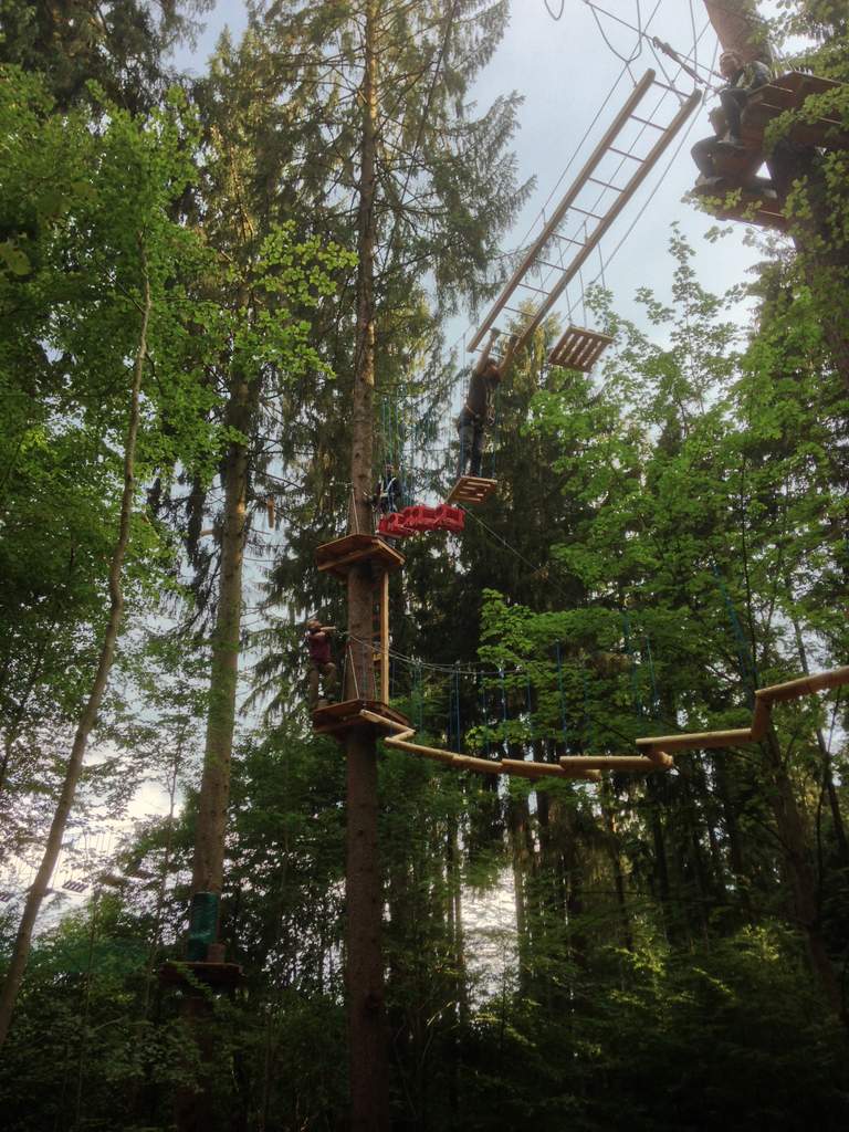 Daniel, der laut eigener Aussage unter ein wenig Höhenangst leidet, hatte anfangs Bedenken, die sich hinterher als völlig unbedenklich herausstellten. Der Einstieg bildet eine Kletterwand, wie man auf dem Bild sieht und es geht bereits dort hoch hinaus. Er hat sich der Herausforderung gestellt und es war für ihn ein absolut tolles Erlebnis. Wir hatten so viel Spaß im Flying Fox Parcours. Andreas hat diesen sogar im Alleingang vor dem Grillen noch ein zweites Mal bezwungen. 🙂